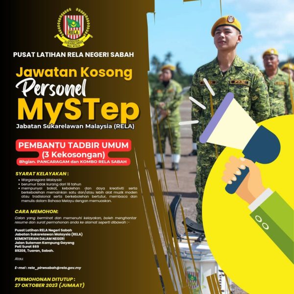 Iklan Jawatan Jabatan Sukarelawan Malaysia (RELA) Mystep Like serta Ikut Facebook Kami, follow Chanel WhatsApp Jawatan Kosong & Telegram Portal SPA9 untuk capaian pantas kekosongan jawatan daripada kami sekarang.