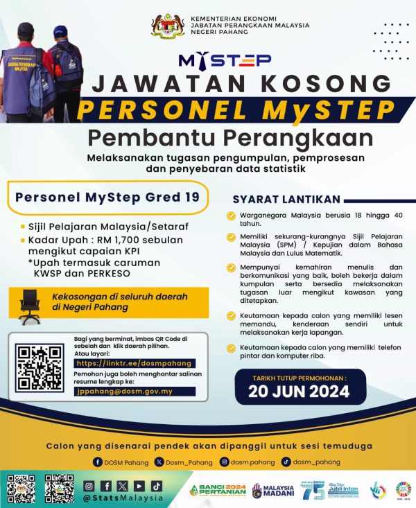 Iklan Jawatan Kosong Jabatan Perangkaan Malaysia Negeri Pahang Like serta Ikut Facebook Kami, follow Chanel WhatsApp Jawatan Kosong & Telegram Portal SPA9 untuk capaian pantas kekosongan jawatan daripada kami sekarang. Klik Jawatan Disini