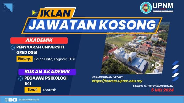 Iklan Jawatan Jawatan Kosong Universiti Pertahanan Nasional Malaysia (UPNM) Like serta Ikut Facebook Kami, follow Chanel WhatsApp Jawatan Kosong & Telegram Portal SPA9 untuk capaian pantas kekosongan jawatan daripada kami sekarang. Klik Jawatan Disini