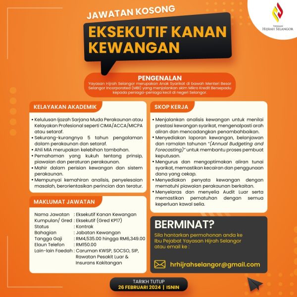 Iklan Jawatan Jawatan Kosong Yayasan Hijrah Selangor Like serta Ikut Facebook Kami, follow Chanel WhatsApp Jawatan Kosong & Telegram Portal SPA9 untuk capaian pantas kekosongan jawatan daripada kami sekarang.
