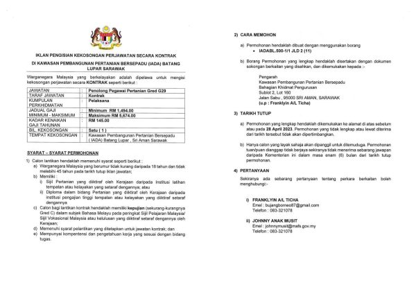 Iklan Jawatan Kawasan Pembangunan Pertanian Bersepadu (IADA) Like serta Ikut Facebook Kami, follow Chanel WhatsApp Jawatan Kosong & Telegram Portal SPA9 untuk capaian pantas kekosongan jawatan daripada kami sekarang. Klik Jawatan Disini Klik Jawatan Disini Klik Jawatan Disini