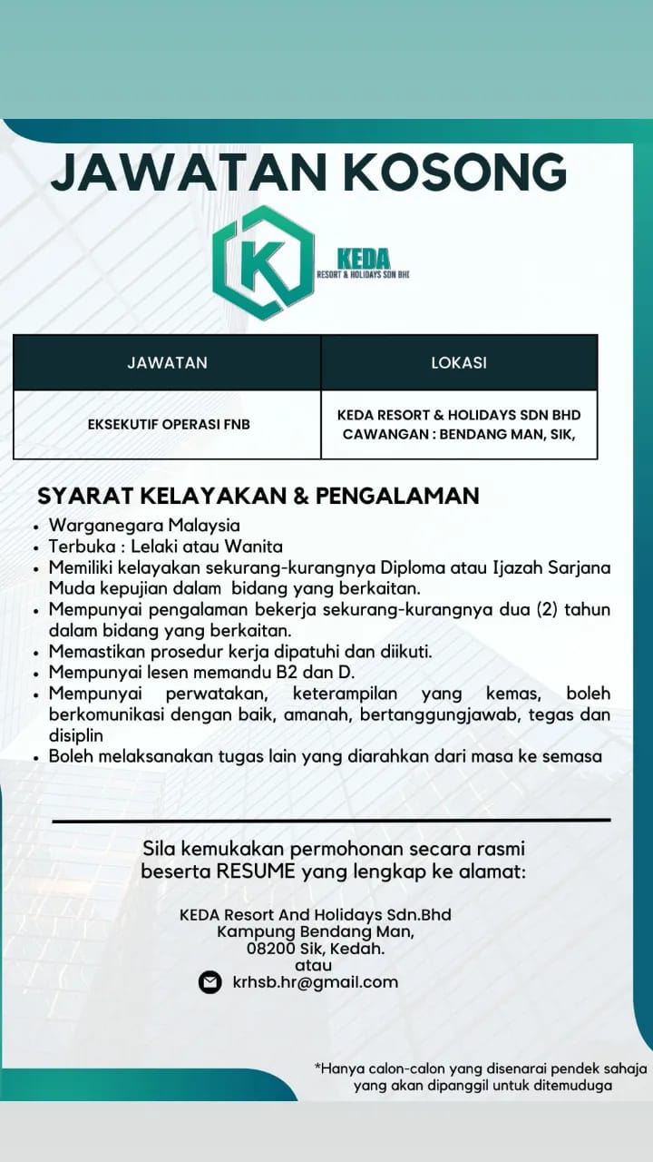Iklan Jawatan Keda Resort And Holidays Sdn Bhd Like serta Ikut Facebook Kami, follow Chanel WhatsApp Jawatan Kosong & Telegram Portal SPA9 untuk capaian pantas kekosongan jawatan daripada kami sekarang. Klik Jawatan Disini