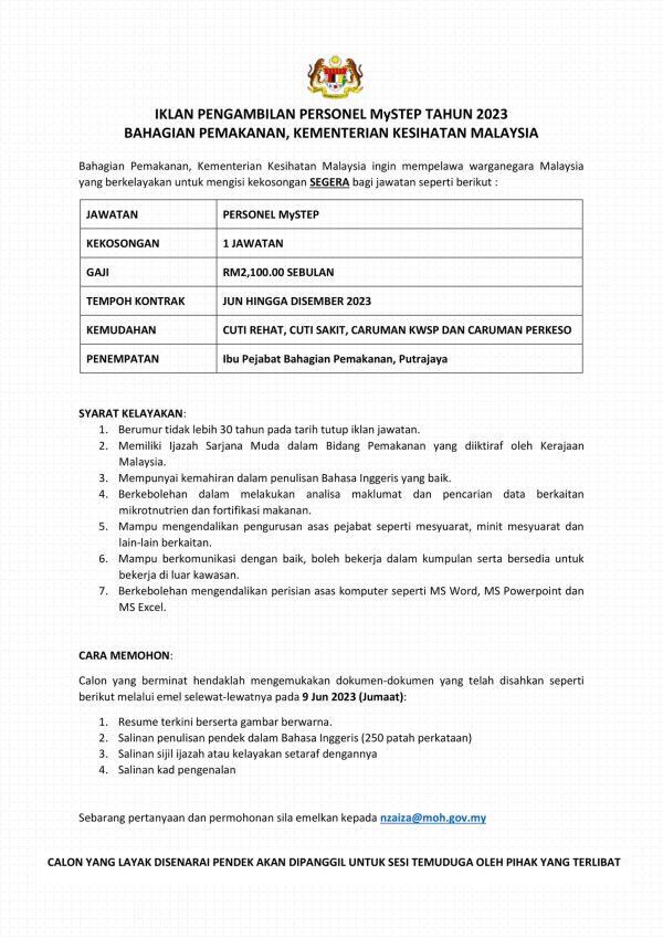 Iklan Jawatan Kementerian Kesihatan Malaysia (KKM)