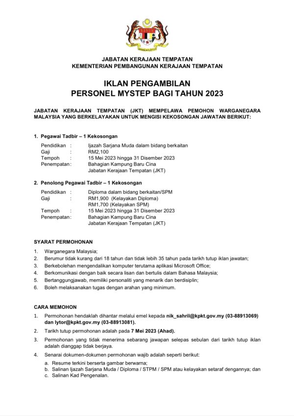 Iklan Jawatan Kementerian Pembangunan Kerajaan Tempatan Like serta Ikut Facebook Kami, follow Chanel WhatsApp Jawatan Kosong & Telegram Portal SPA9 untuk capaian pantas kekosongan jawatan daripada kami sekarang.