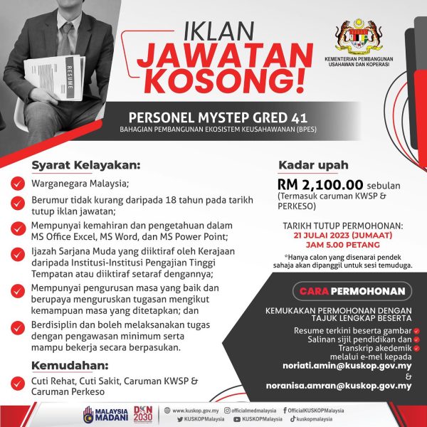 Iklan Jawatan Kementerian Pembangunan Usahawan dan Koperasi (KUSKOP) Like serta Ikut Facebook Kami, follow Chanel WhatsApp Jawatan Kosong & Telegram Portal SPA9 untuk capaian pantas kekosongan jawatan daripada kami sekarang.