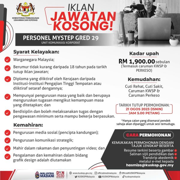Iklan Jawatan Kementerian Pembangunan Usahawan Dan Koperasi Like serta Ikut Facebook Kami, follow Chanel WhatsApp Jawatan Kosong & Telegram Portal SPA9 untuk capaian pantas kekosongan jawatan daripada kami sekarang.