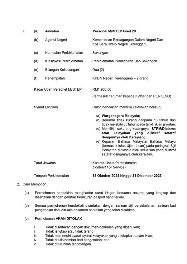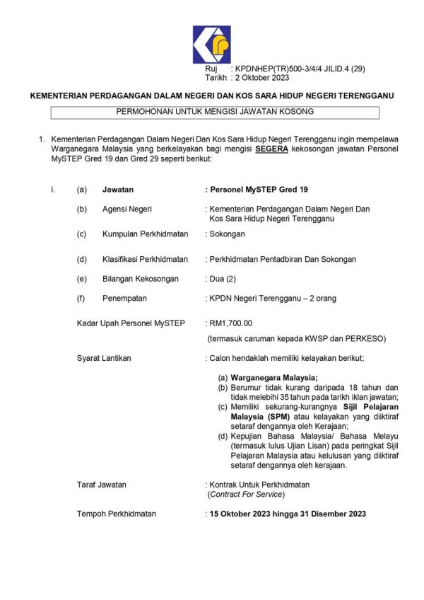 Iklan Jawatan Kementerian Perdagangan Dalam Negeri & Kos Sara Hidup Negeri Terengganu Like serta Ikut Facebook Kami, follow Chanel WhatsApp Jawatan Kosong & Telegram Portal SPA9 untuk capaian pantas kekosongan jawatan daripada kami sekarang.