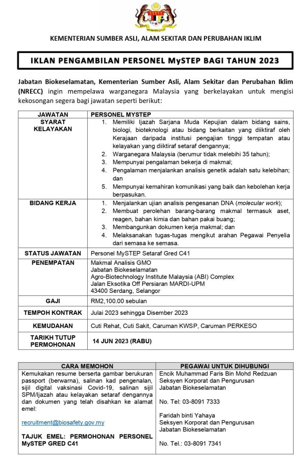 Iklan Jawatan Kementerian Sumber Asli, Alam Sekitar Dan Perubahan Iklim Like serta Ikut Facebook Kami, follow Chanel WhatsApp Jawatan Kosong & Telegram Portal SPA9 untuk capaian pantas kekosongan jawatan daripada kami sekarang.