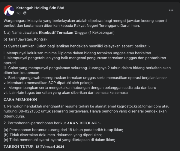 Iklan Jawatan Ketengah Holding Sdn Bhd
