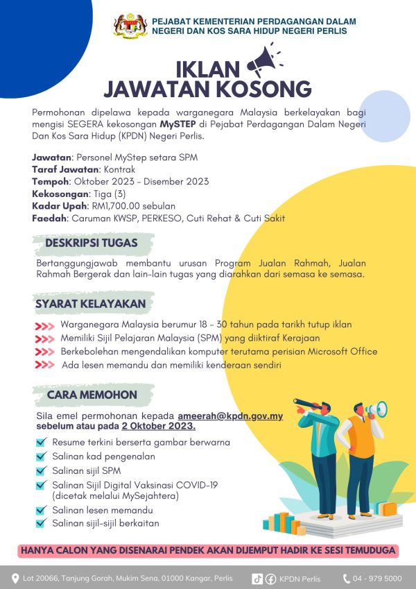 IKlan Jawatan Kini Kementerian Perdagangan Dalam Negeri Dan Kos Sara Hidup (KPDN) Like serta Ikut Facebook Kami, follow Chanel WhatsApp Jawatan Kosong & Telegram Portal SPA9 untuk capaian pantas kekosongan jawatan daripada kami sekarang.