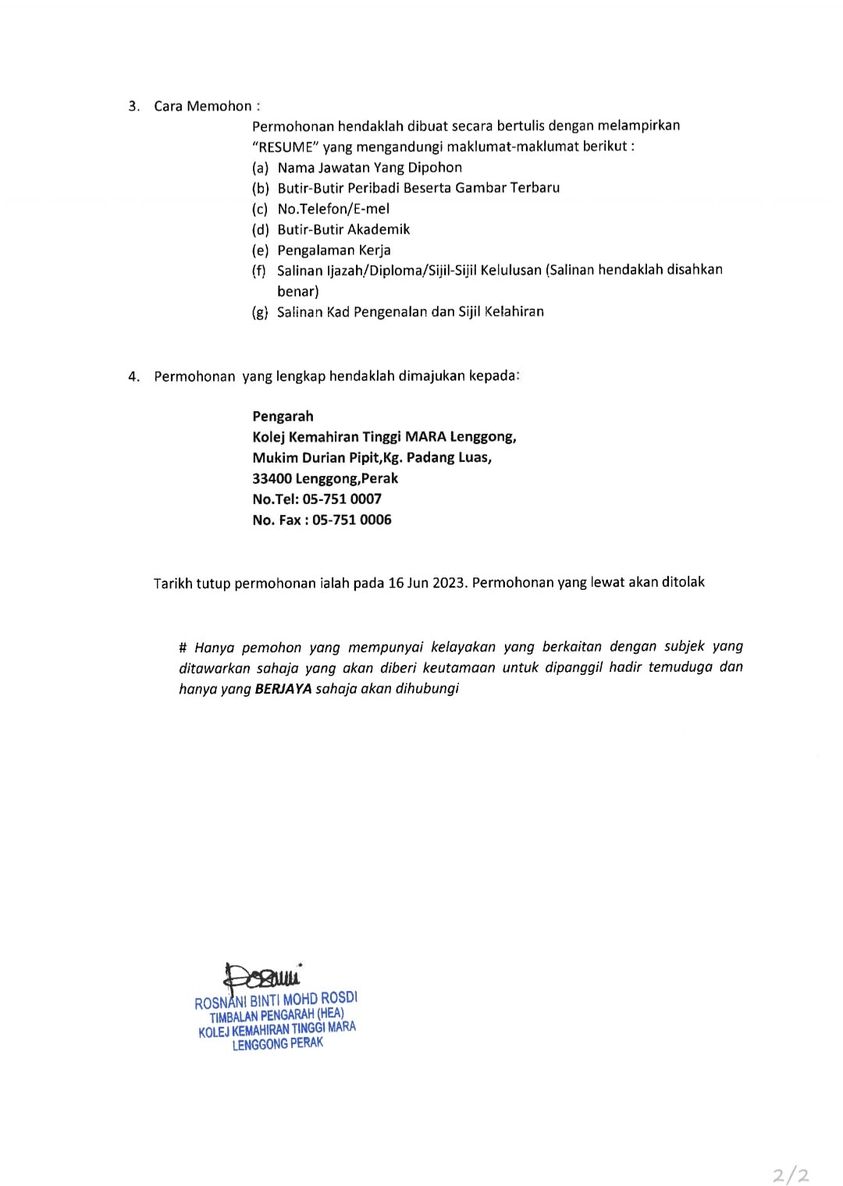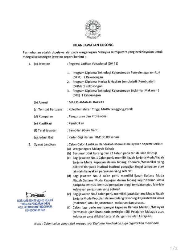 Iklan Jawatan Kolej Kemahiran Tinggi MARA (KKTM) Like serta Ikut Facebook Kami, follow Chanel WhatsApp Jawatan Kosong & Telegram Portal SPA9 untuk capaian pantas kekosongan jawatan daripada kami sekarang.