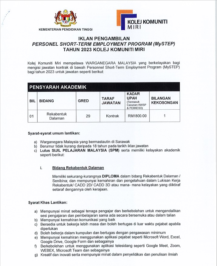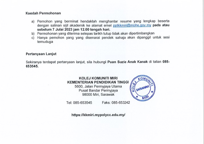 Iklan Jawatan Kolej Komuniti Miri Like serta Ikut Facebook Kami, follow Chanel WhatsApp Jawatan Kosong & Telegram Portal SPA9 untuk capaian pantas kekosongan jawatan daripada kami sekarang.