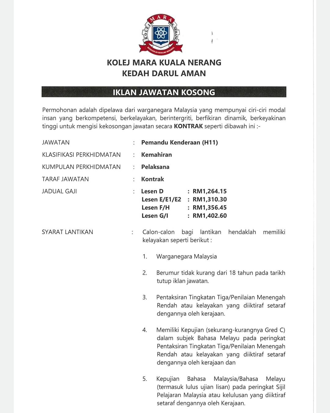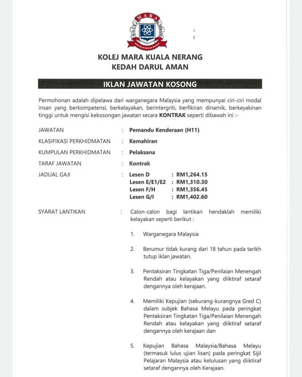 IKlan Jawatan Kolej MARA Kuala Nerang Like serta Ikut Facebook Kami, follow Chanel WhatsApp Jawatan Kosong & Telegram Portal SPA9 untuk capaian pantas kekosongan jawatan daripada kami sekarang.