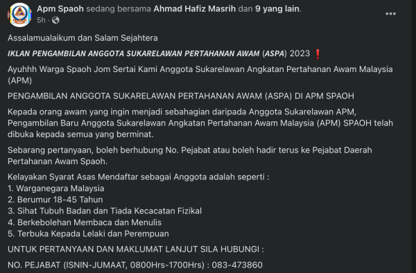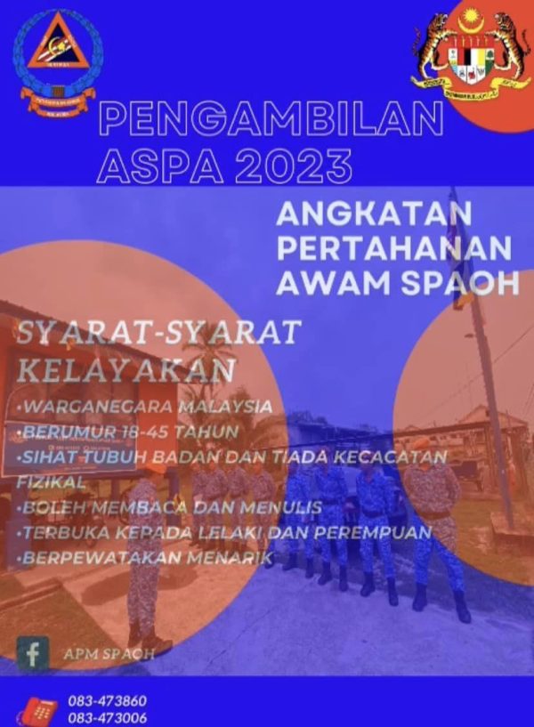 Iklan Jawatan Kosong Angkatan Pertahanan Awam (APM) SPAOH Like serta Ikut Facebook Kami, follow Chanel WhatsApp Jawatan Kosong & Telegram Portal SPA9 untuk capaian pantas kekosongan jawatan daripada kami sekarang.