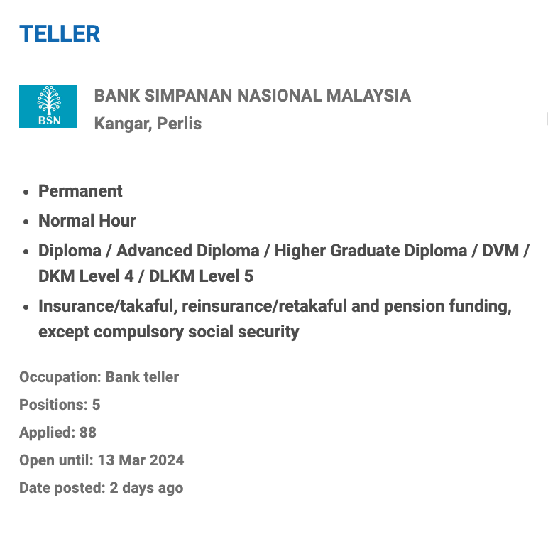 Iklan Jawatan Kosong Bank Simpanan Nasional Malaysia