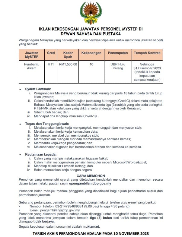Iklan Jawatan Kosong Dewan Bahasa Dan Pustaka Like serta Ikut Facebook Kami, follow Chanel WhatsApp Jawatan Kosong & Telegram Portal SPA9 untuk capaian pantas kekosongan jawatan daripada kami sekarang. Klik Jawatan Disini
