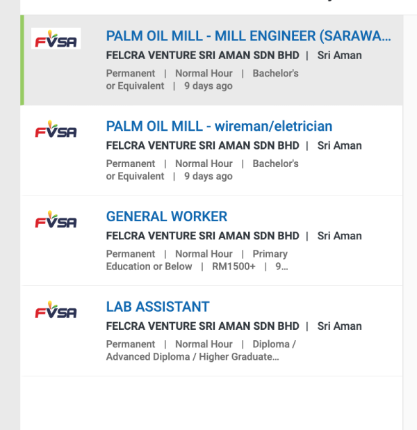 Permohonan jawatan ini boleh dibuat melalui Portal MyFutureJobs. Sila ke Portal MyFutureJobs dan Masukkan Kata Carian yang ingin dicari “FELCRA VENTURE SRI AMAN SDN BHD” di bahagian carian untuk memohon jawatan yang diiklankan.