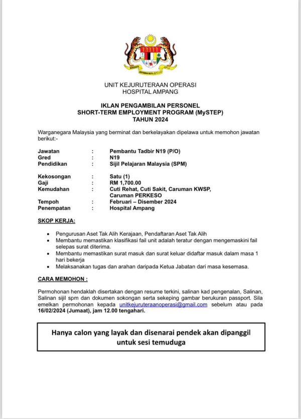 Iklan Jawatan Kosong Hospital Ampang Like serta Ikut Facebook Kami, follow Chanel WhatsApp Jawatan Kosong & Telegram Portal SPA9 untuk capaian pantas kekosongan jawatan daripada kami sekarang.