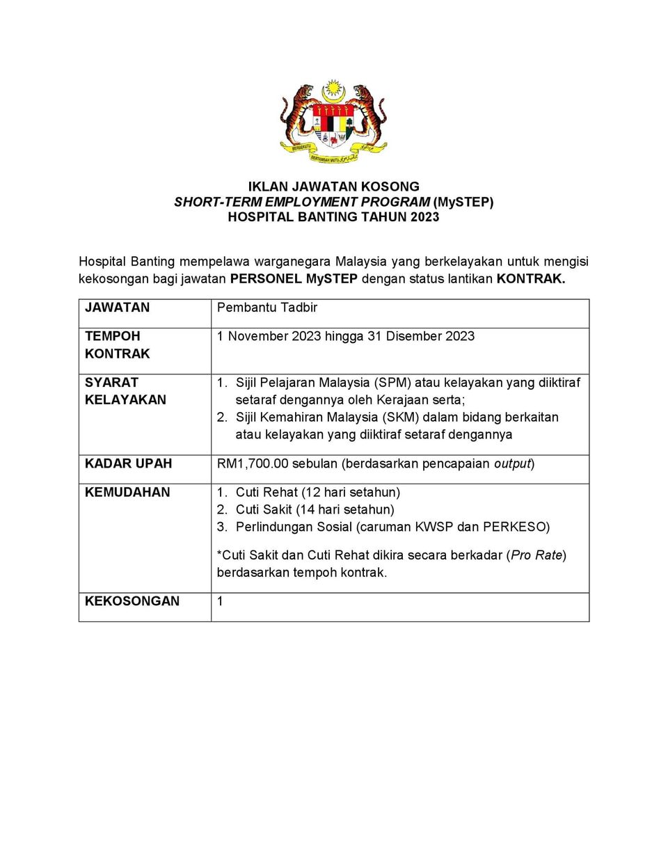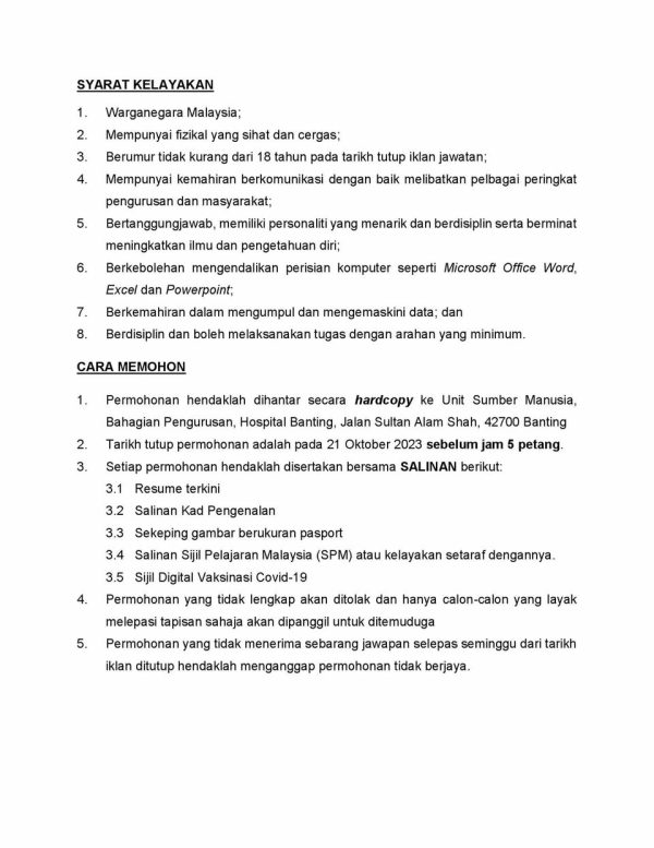 Iklan Jawatan Kosong Hospital Banting Like serta Ikut Facebook Kami, follow Chanel WhatsApp Jawatan Kosong & Telegram Portal SPA9 untuk capaian pantas kekosongan jawatan daripada kami sekarang.