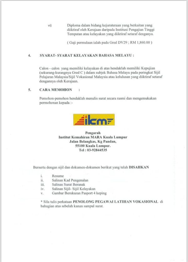 Iklan Jawatan Kosong Institut Kemahiran Mara (IKM) Klik Jawatan Disini Like serta Ikut Facebook Kami, follow Chanel WhatsApp Jawatan Kosong & Telegram Portal SPA9 untuk capaian pantas kekosongan jawatan daripada kami sekarang.