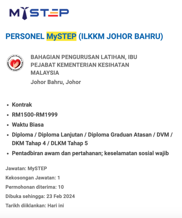 Iklan Jawatan Kosong Institut Latihan Kementerian Kesihatan Malaysia (ILKKM)