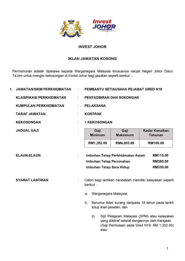 Iklan Jawatan Kosong Invest Johor Like serta Ikut Facebook Kami, follow Chanel WhatsApp Jawatan Kosong & Telegram Portal SPA9 untuk capaian pantas kekosongan jawatan daripada kami sekarang.