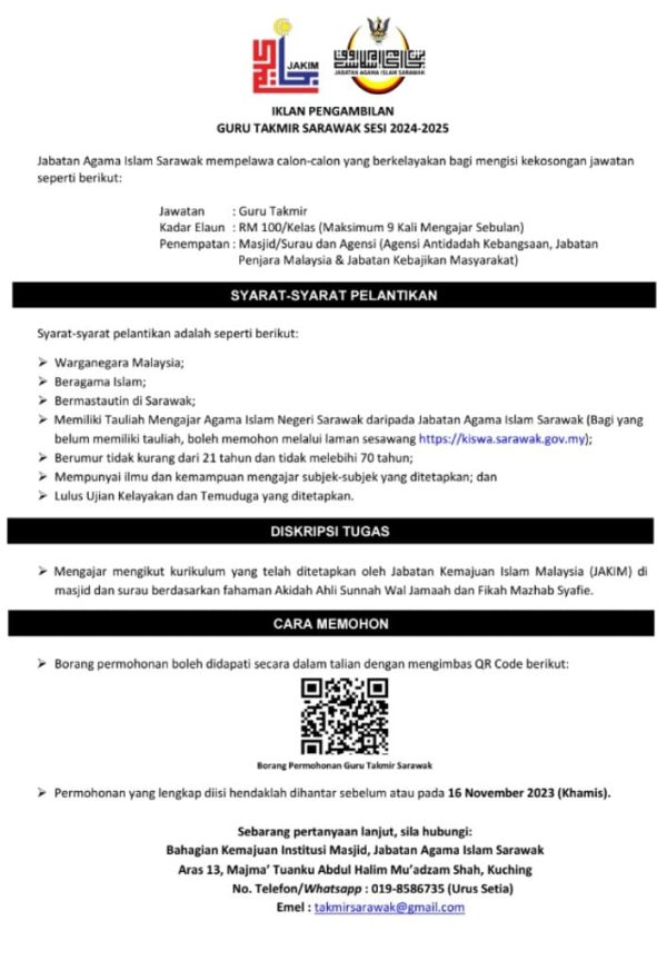 Iklan Jawatan Kosong Jabatan Agama Islam Sarawak Like serta Ikut Facebook Kami, follow Chanel WhatsApp Jawatan Kosong & Telegram Portal SPA9 untuk capaian pantas kekosongan jawatan daripada kami sekarang. Klik Jawatan Disini