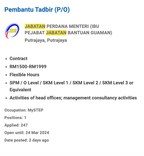 - Setelah mendaftar, anda boleh terus login dan mencari bidang kerjaya yang diinginkan mengikut lokasi yang ditawarkan