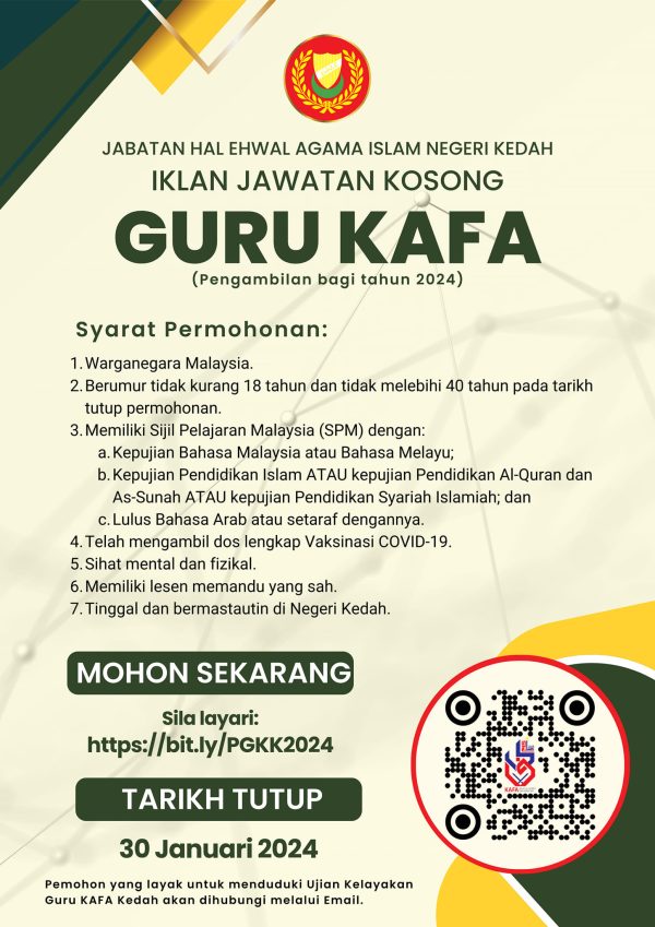 Iklan Jawatan Kosong Jabatan Hal Ehwal Agama Islam Negeri Kedah ~ Guru KAFA Like serta Ikut Facebook Kami, follow Chanel WhatsApp Jawatan Kosong & Telegram Portal SPA9 untuk capaian pantas kekosongan jawatan daripada kami sekarang.