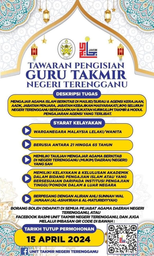 Iklan Jawatan Kosong Jabatan Hal Ehwal Agama Islam Negeri Terengganu Klik Jawatan Disini Like serta Ikut Facebook Kami, follow Chanel WhatsApp Jawatan Kosong & Telegram Portal SPA9 untuk capaian pantas kekosongan jawatan daripada kami sekarang.
