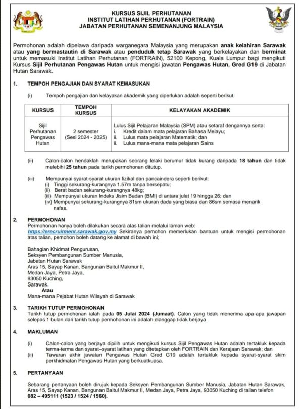 Iklan Jawatan Kosong Jabatan Hutan Sarawak (JHS) ~ Pengawas Hutan Like serta Ikut Facebook Kami, follow Chanel WhatsApp Jawatan Kosong & Telegram Portal SPA9 untuk capaian pantas kekosongan jawatan daripada kami sekarang. Klik Jawatan Disini Rujukan Jawatan Disini