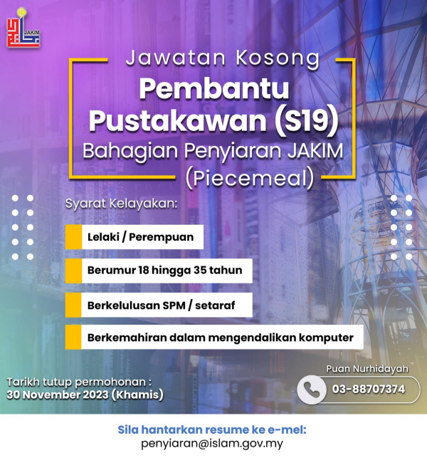 Iklan Jawatan Kosong Jabatan Kemajuan Islam Malaysia (JAKIM) Like serta Ikut Facebook Kami, follow Chanel WhatsApp Jawatan Kosong & Telegram Portal SPA9 untuk capaian pantas kekosongan jawatan daripada kami sekarang.