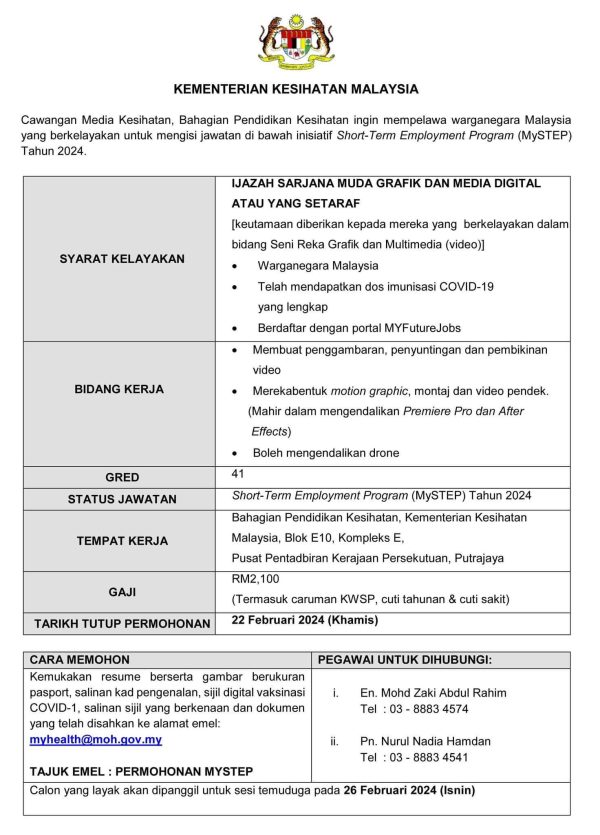 Iklan Jawatan Kosong Jabatan Kesihatan Negeri Kedah Like serta Ikut Facebook Kami, follow Chanel WhatsApp Jawatan Kosong & Telegram Portal SPA9 untuk capaian pantas kekosongan jawatan daripada kami sekarang.