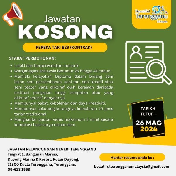 Iklan Jawatan Kosong Jabatan Pelancongan Negeri Terengganu Like serta Ikut Facebook Kami, follow Chanel WhatsApp Jawatan Kosong & Telegram Portal SPA9 untuk capaian pantas kekosongan jawatan daripada kami sekarang.