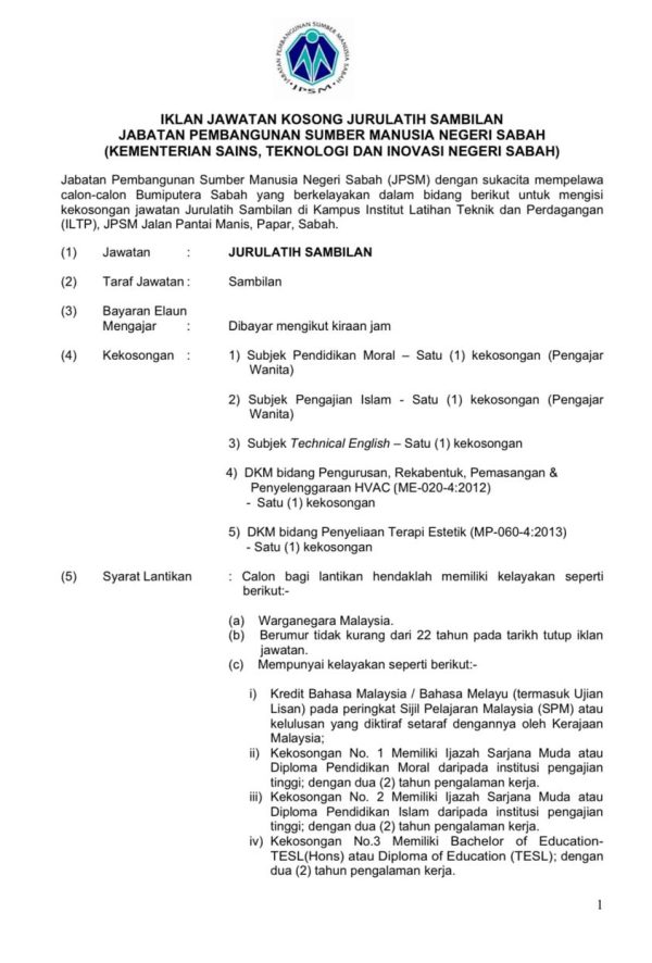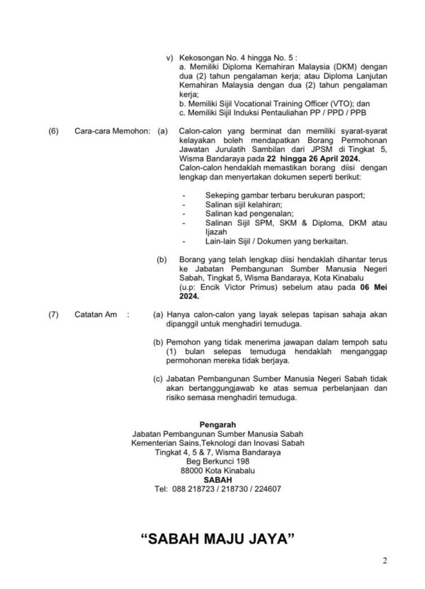 Iklan Jawatan Kosong Jabatan Pembangunan Sumber Manusia Negeri Sabah Like serta Ikut Facebook Kami, follow Chanel WhatsApp Jawatan Kosong & Telegram Portal SPA9 untuk capaian pantas kekosongan jawatan daripada kami sekarang.