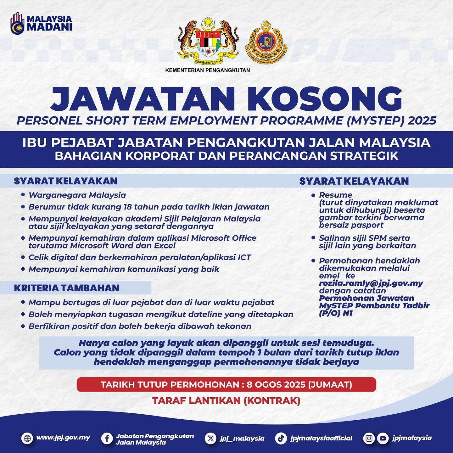 Iklan Jawatan Kosong Jabatan Pengangkutan Jalan (JPJ) Like serta Ikut Facebook Kami, follow Chanel WhatsApp Jawatan Kosong & Telegram Portal SPA9 untuk capaian pantas kekosongan jawatan daripada kami sekarang. Klik Jawatan Disini