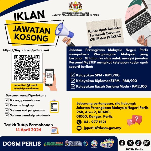 Iklan Jawatan Kosong Jabatan Perangkaan Malaysia ~ Mystep Like serta Ikut Facebook Kami, follow Chanel WhatsApp Jawatan Kosong & Telegram Portal SPA9 untuk capaian pantas kekosongan jawatan daripada kami sekarang.