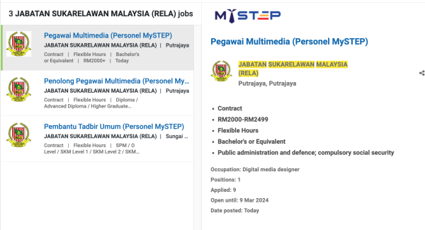 Permohonan jawatan ini boleh dibuat melalui Portal MyFutureJobs. Sila ke Portal MyFutureJobs dan Masukkan Kata Carian yang ingin dicari “JABATAN SUKARELAWAN MALAYSIA (RELA)” di bahagian carian untuk memohon jawatan yang diiklankan.