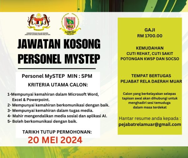 Iklan Jawatan Kosong Jabatan Sukarelawan Malaysia (RELA) ~ Personel Mystep Like serta Ikut Facebook Kami, follow Chanel WhatsApp Jawatan Kosong & Telegram Portal SPA9 untuk capaian pantas kekosongan jawatan daripada kami sekarang.