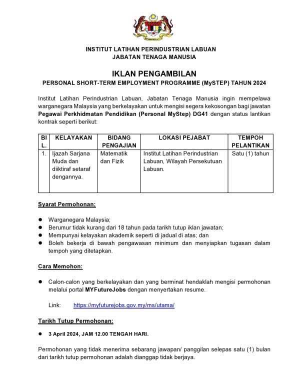 Iklan Jawatan Kosong Jabatan Tenaga Manusia Like serta Ikut Facebook Kami, follow Chanel WhatsApp Jawatan Kosong & Telegram Portal SPA9 untuk capaian pantas kekosongan jawatan daripada kami sekarang.