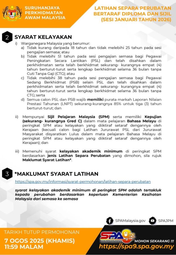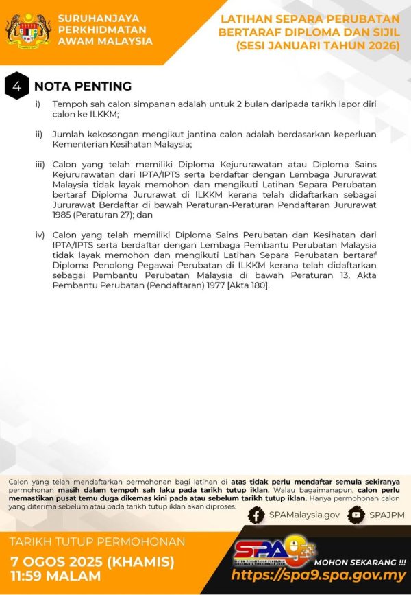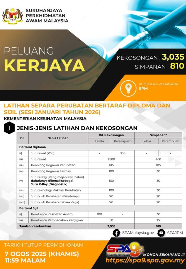 Iklan Jawatan Kosong Kementerian Kesihatan Malaysia (KKM) ~ Latihan Separa Perubatan Bertaraf Diploma Dan Sijil (Sesi Januari Tahun 2026)
