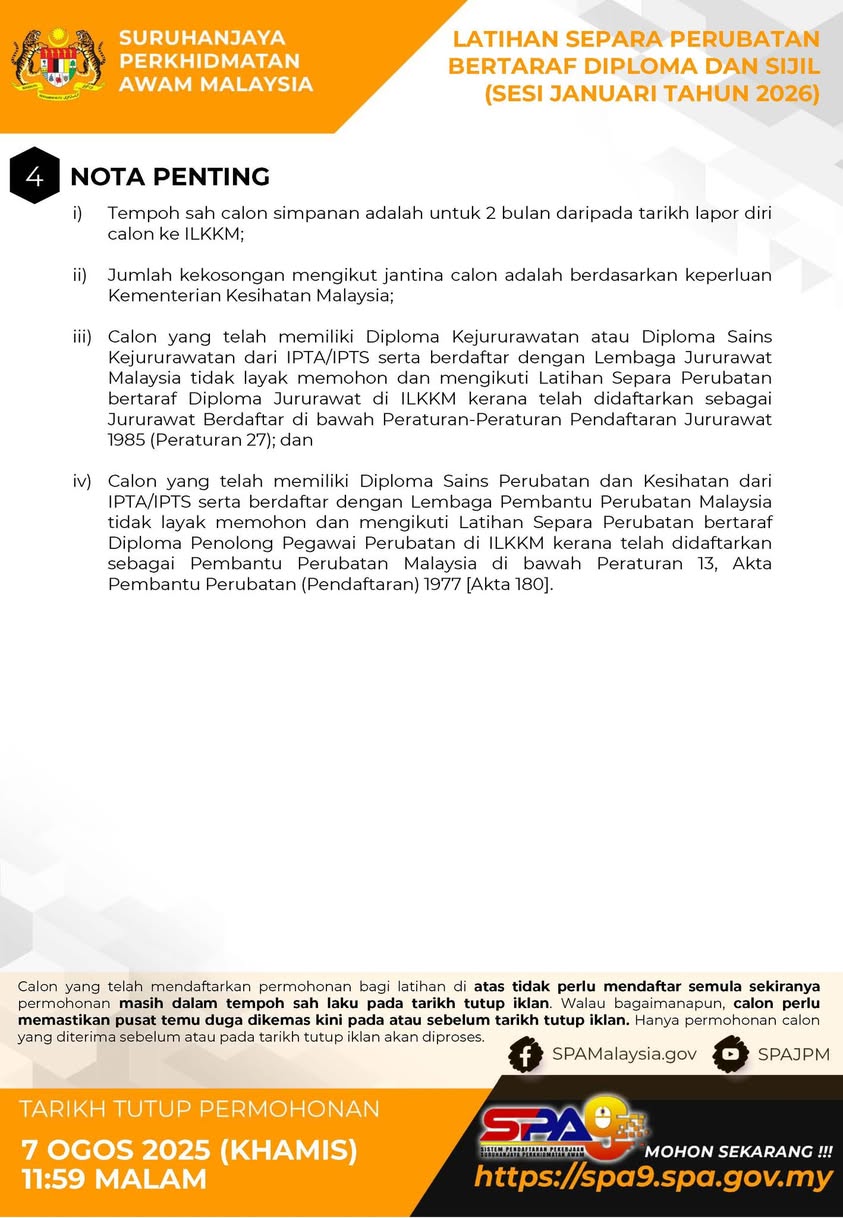 Like serta Ikut Facebook Kami, follow Chanel WhatsApp Jawatan Kosong & Telegram Portal SPA9 untuk capaian pantas kekosongan jawatan daripada kami sekarang.