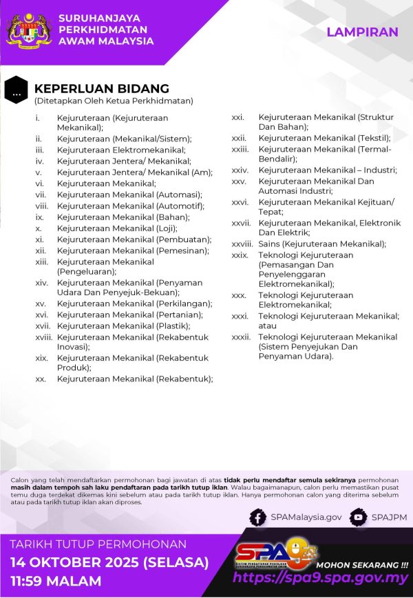 Like serta Ikut Facebook Kami, follow Chanel WhatsApp Jawatan Kosong & Telegram Portal SPA9 untuk capaian pantas kekosongan jawatan daripada kami sekarang.