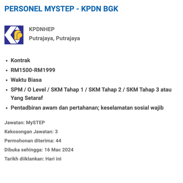Iklan Jawatan Kosong Kementerian Perdagangan Dalam Negeri Dan Hal Ehwal Pengguna (KPDNHEP)