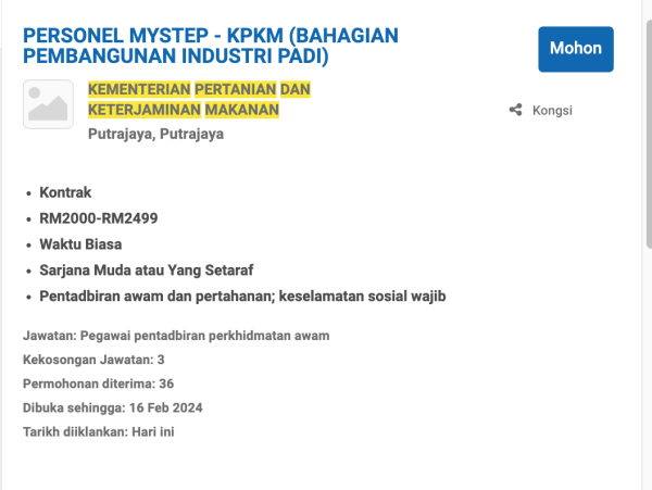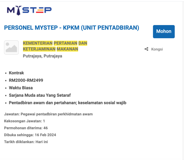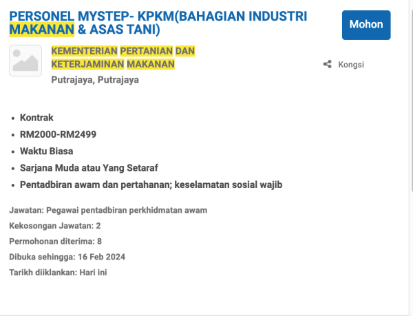 Iklan Jawatan Kosong Kementerian Pertanian Dan Keterjaminan Makanan ~ Mystep Like serta Ikut Facebook Kami, follow Chanel WhatsApp Jawatan Kosong & Telegram Portal SPA9 untuk capaian pantas kekosongan jawatan daripada kami sekarang.