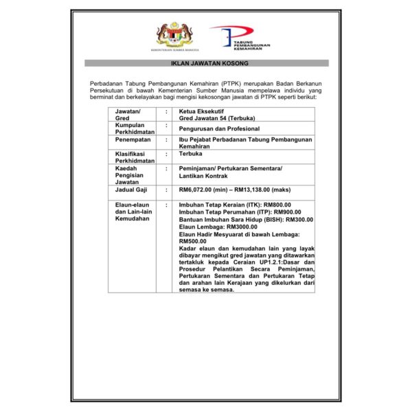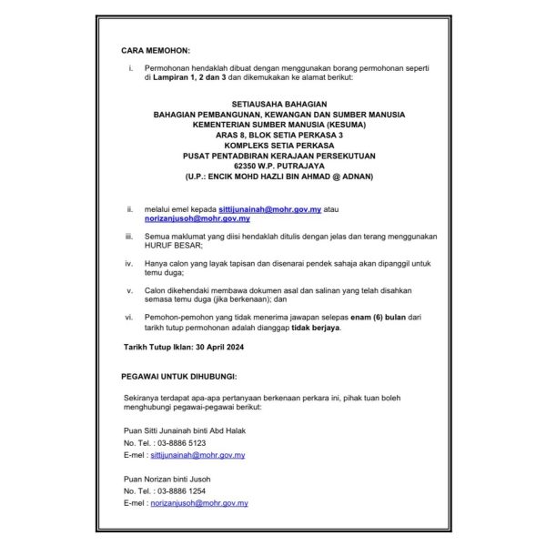 Iklan Jawatan Kosong Kementerian Sumber Manusia Like serta Ikut Facebook Kami, follow Chanel WhatsApp Jawatan Kosong & Telegram Portal SPA9 untuk capaian pantas kekosongan jawatan daripada kami sekarang.