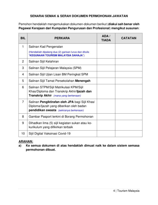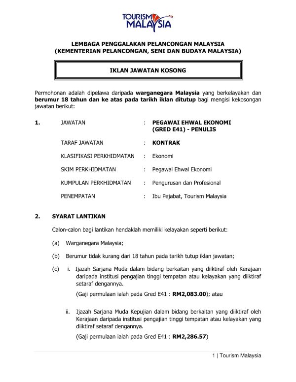 Iklan Jawatan Kosong Lembaga Penggalakan Pelancongan Malaysia Like serta Ikut Facebook Kami, follow Chanel WhatsApp Jawatan Kosong & Telegram Portal SPA9 untuk capaian pantas kekosongan jawatan daripada kami sekarang. Klik Jawatan Disini