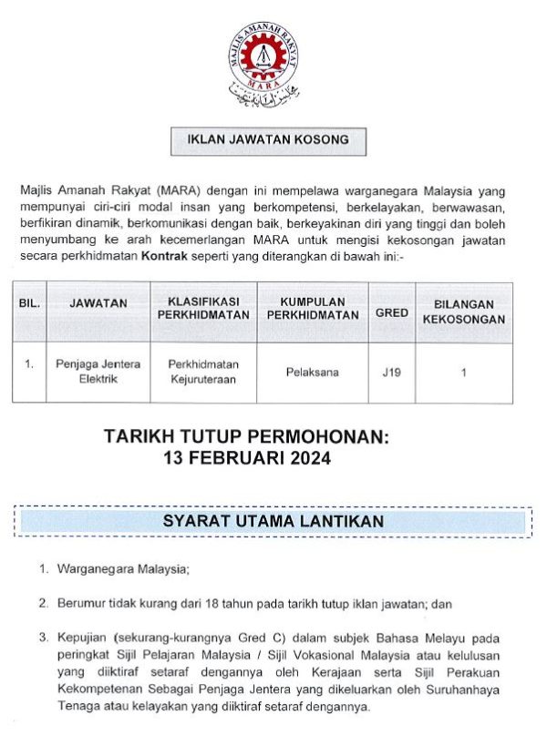 Iklan Jawatan Kosong Majlis Amanah Rakyat (MARA) Like serta Ikut Facebook Kami, follow Chanel WhatsApp Jawatan Kosong & Telegram Portal SPA9 untuk capaian pantas kekosongan jawatan daripada kami sekarang.