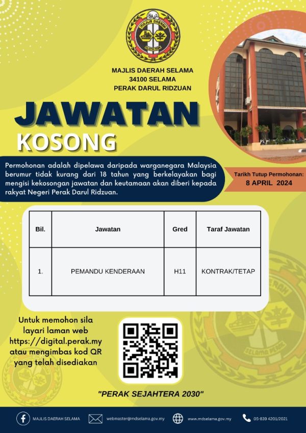 Iklan Jawatan Kosong Majlis Daerah Selama ~ Pemandu Kenderaan Like serta Ikut Facebook Kami, follow Chanel WhatsApp Jawatan Kosong & Telegram Portal SPA9 untuk capaian pantas kekosongan jawatan daripada kami sekarang.