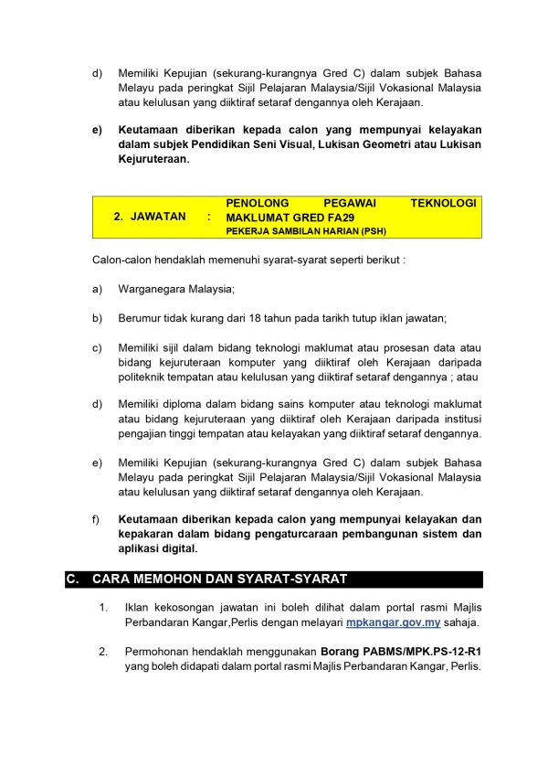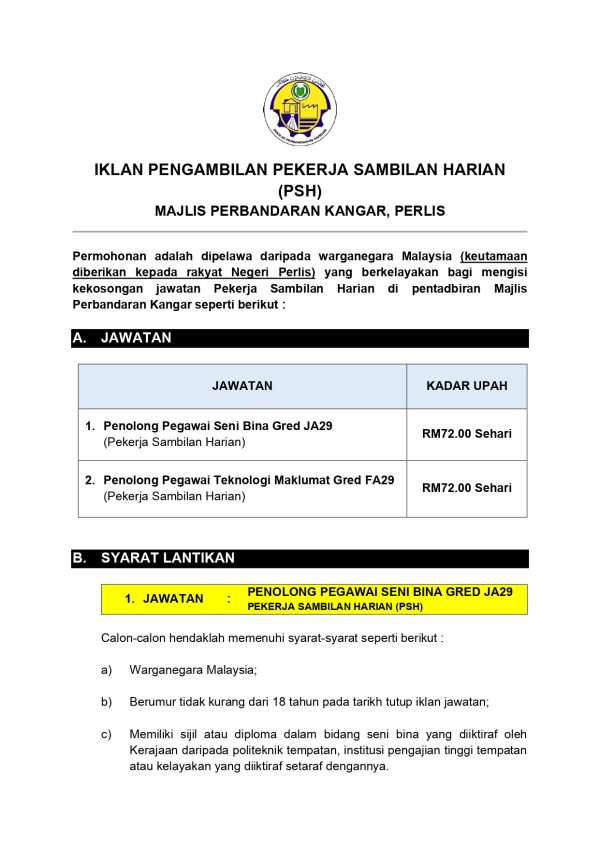 Iklan Jawatan Kosong Majlis Perbandaran Kangar (MPK) ~ Pekerja Sambilan Harian Like serta Ikut Facebook Kami, follow Chanel WhatsApp Jawatan Kosong & Telegram Portal SPA9 untuk capaian pantas kekosongan jawatan daripada kami sekarang.